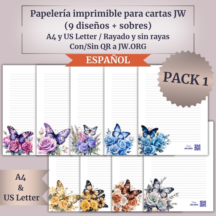 This complete set includes 12 coordinated letter writing designs, each available in lined and unlined versions, with and without a QR code linking to JW.ORG. To complete the look, you’ll also receive matching printable envelopes in both DL (for A4) and #10 (for US Letter) sizes.