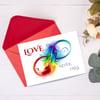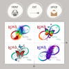 They feature vibrant illustrations of butterflies and feathers intertwined with the infinity symbol.